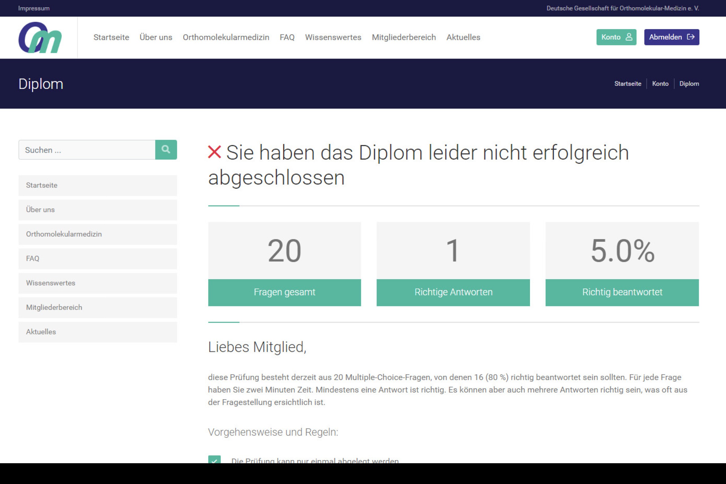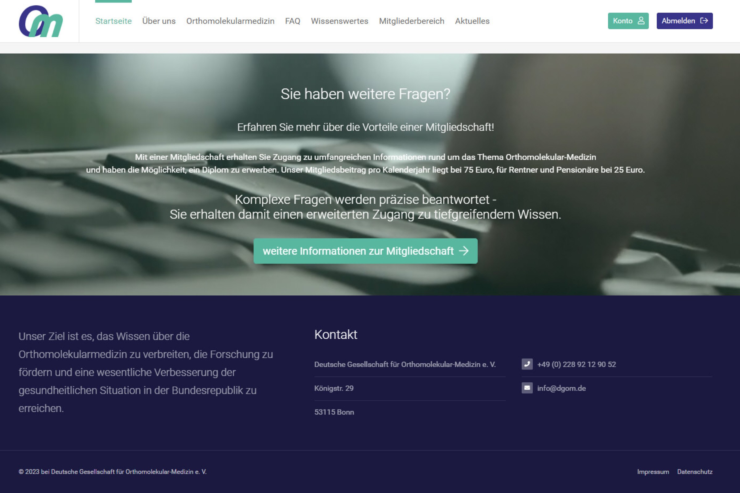 Ansicht Frontend zum DGOM-Diplom
