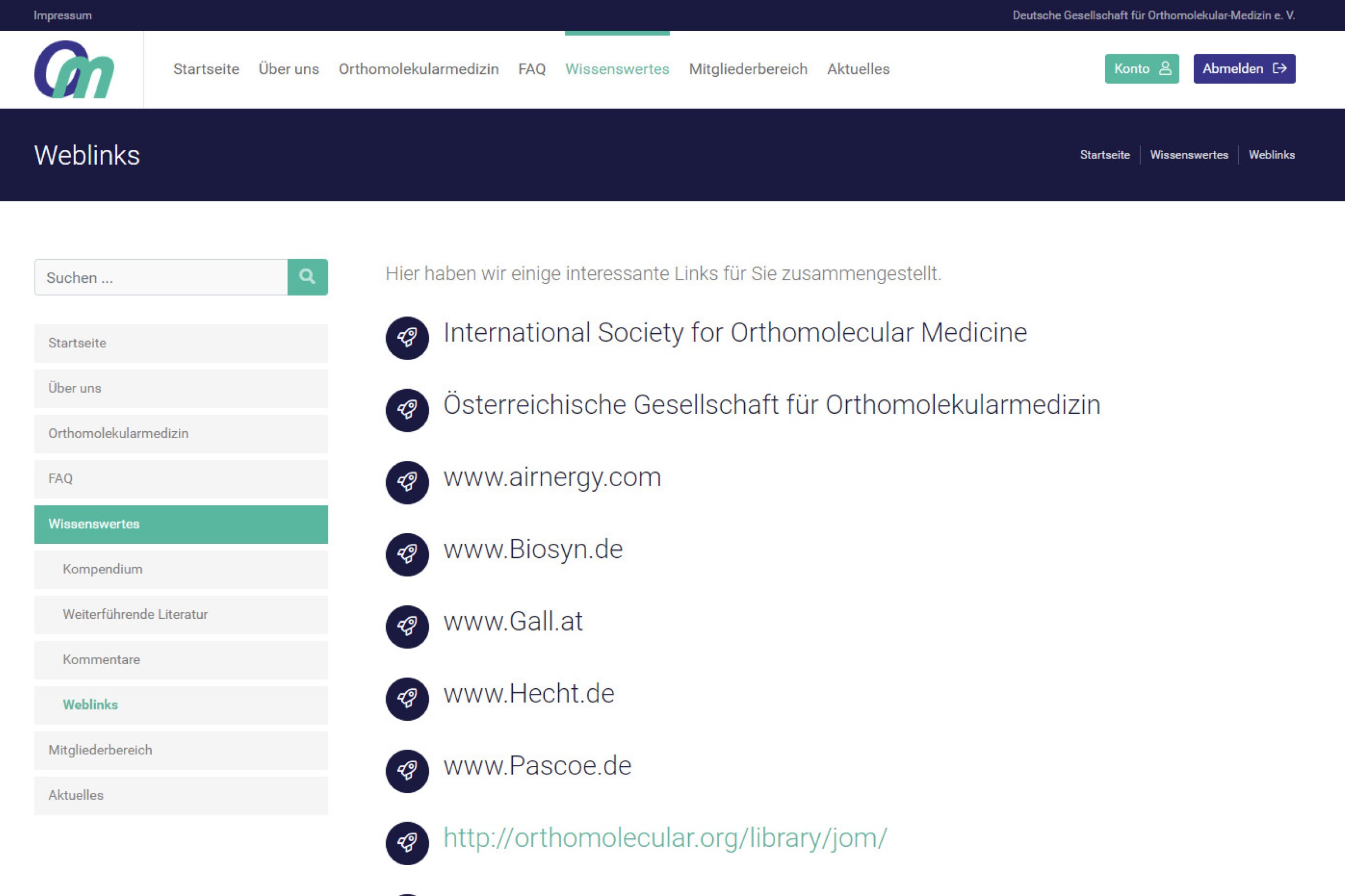 Weblinks zu externen Webseite