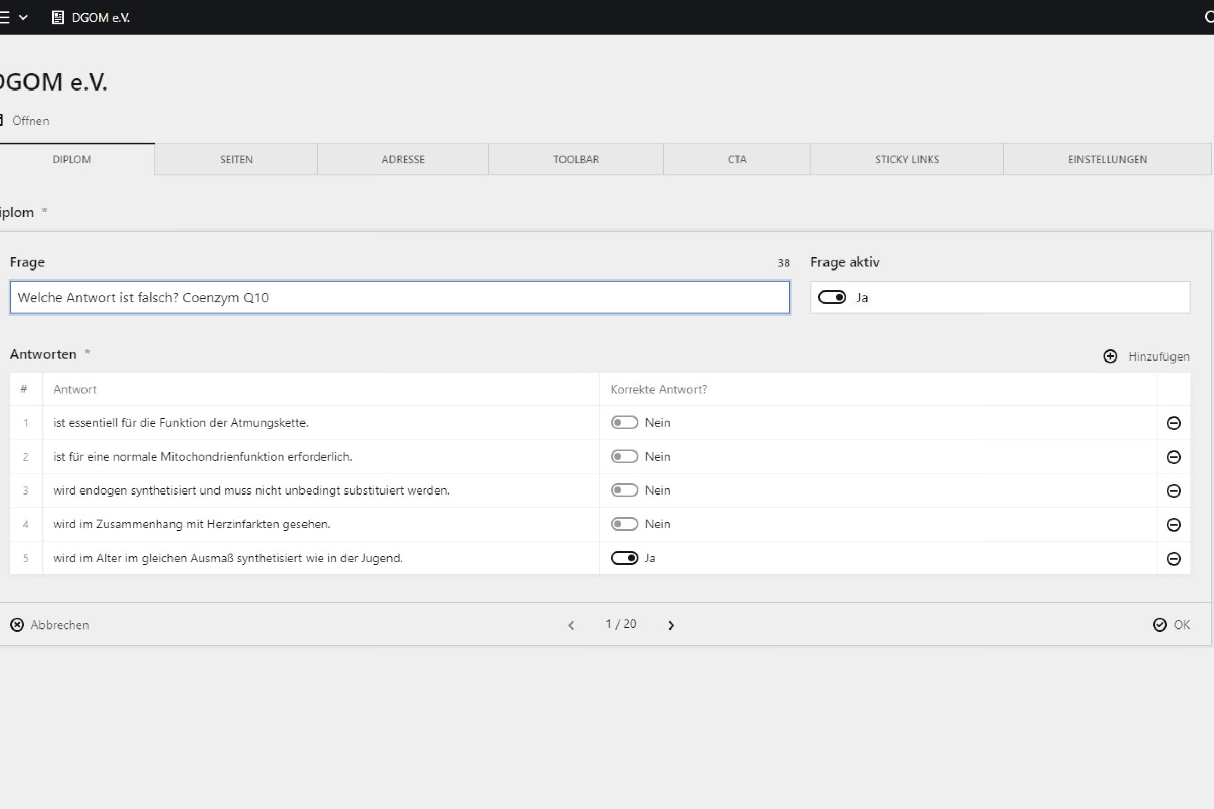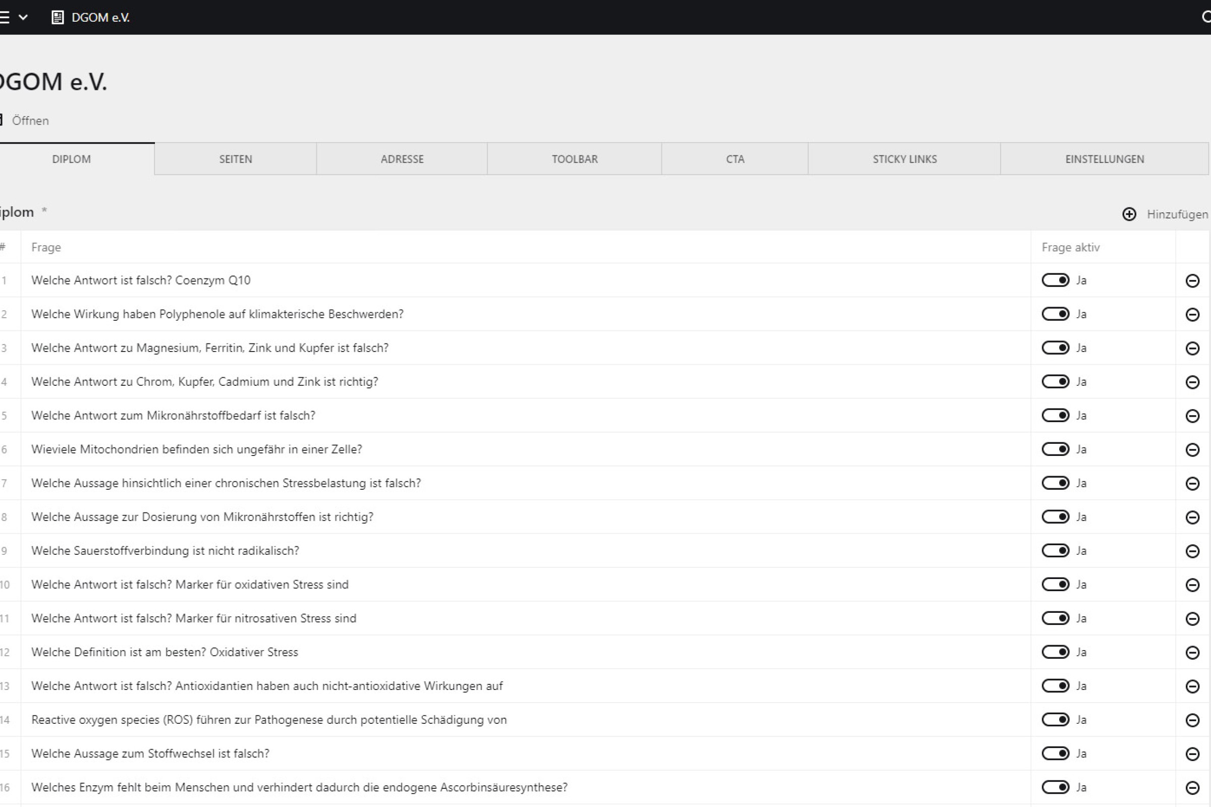 Ansicht Backend zum DGOM-Diplom