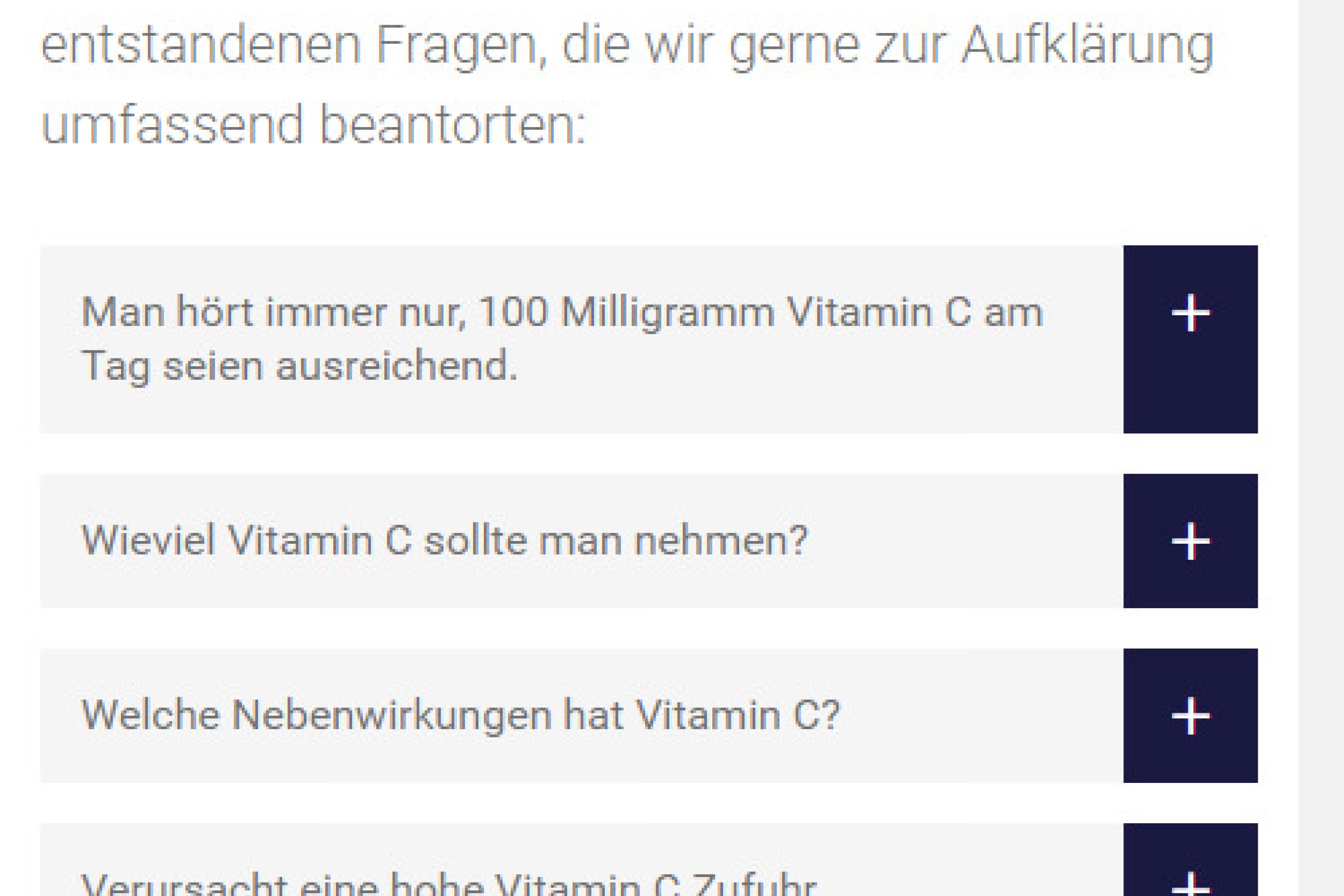 Ausführlicher FAQ-Bereich mittels Accordions