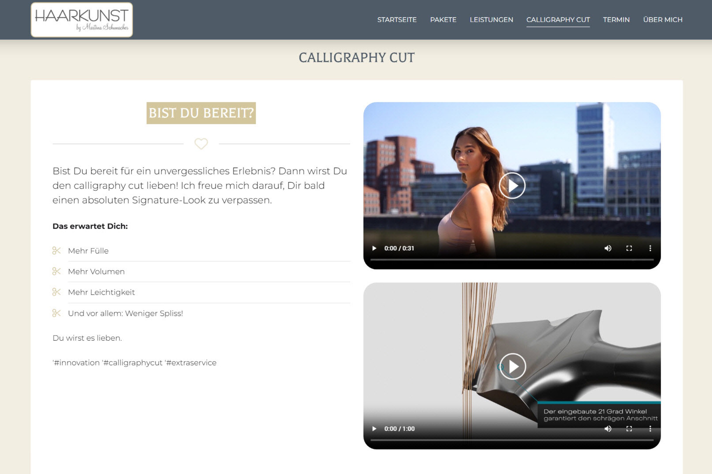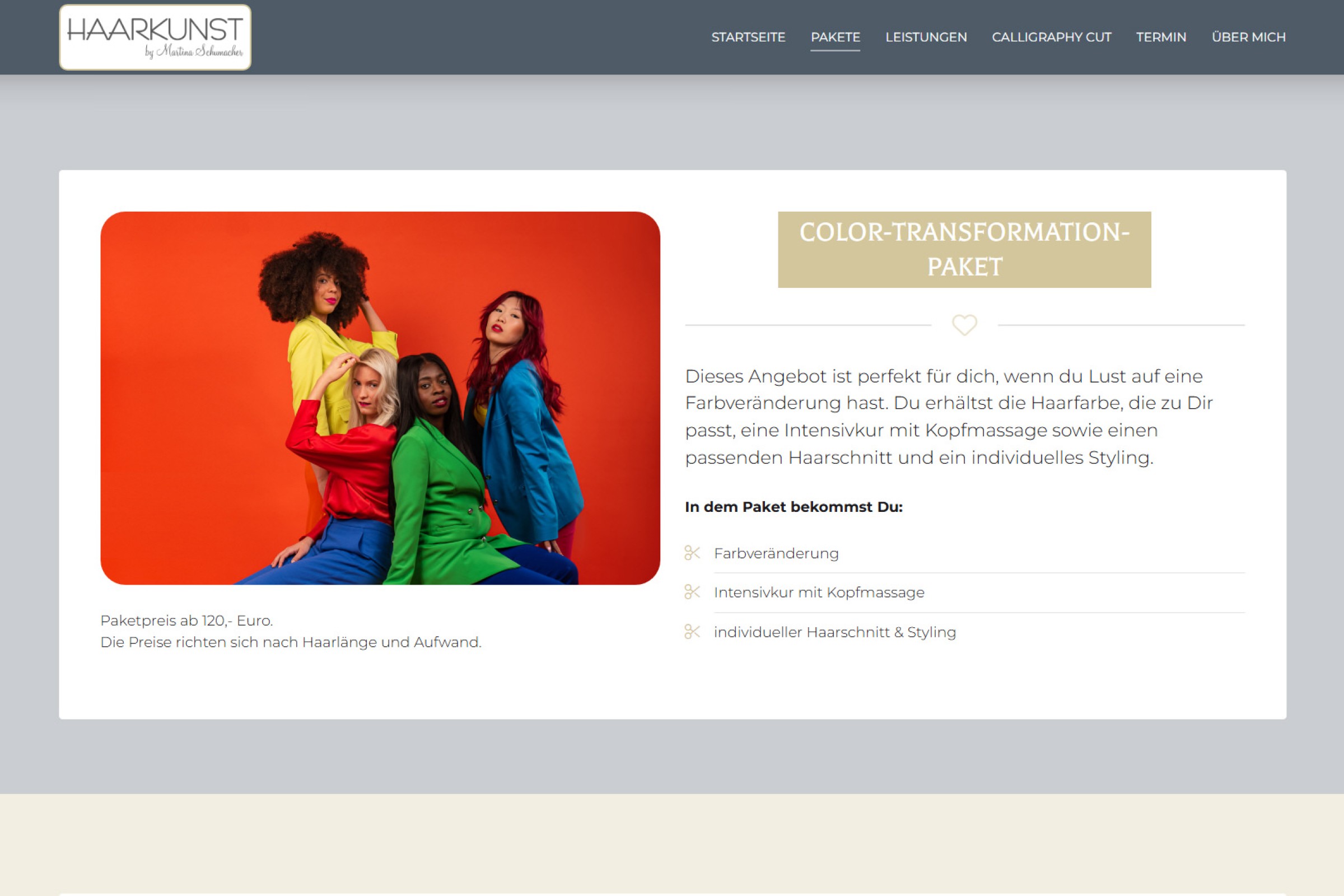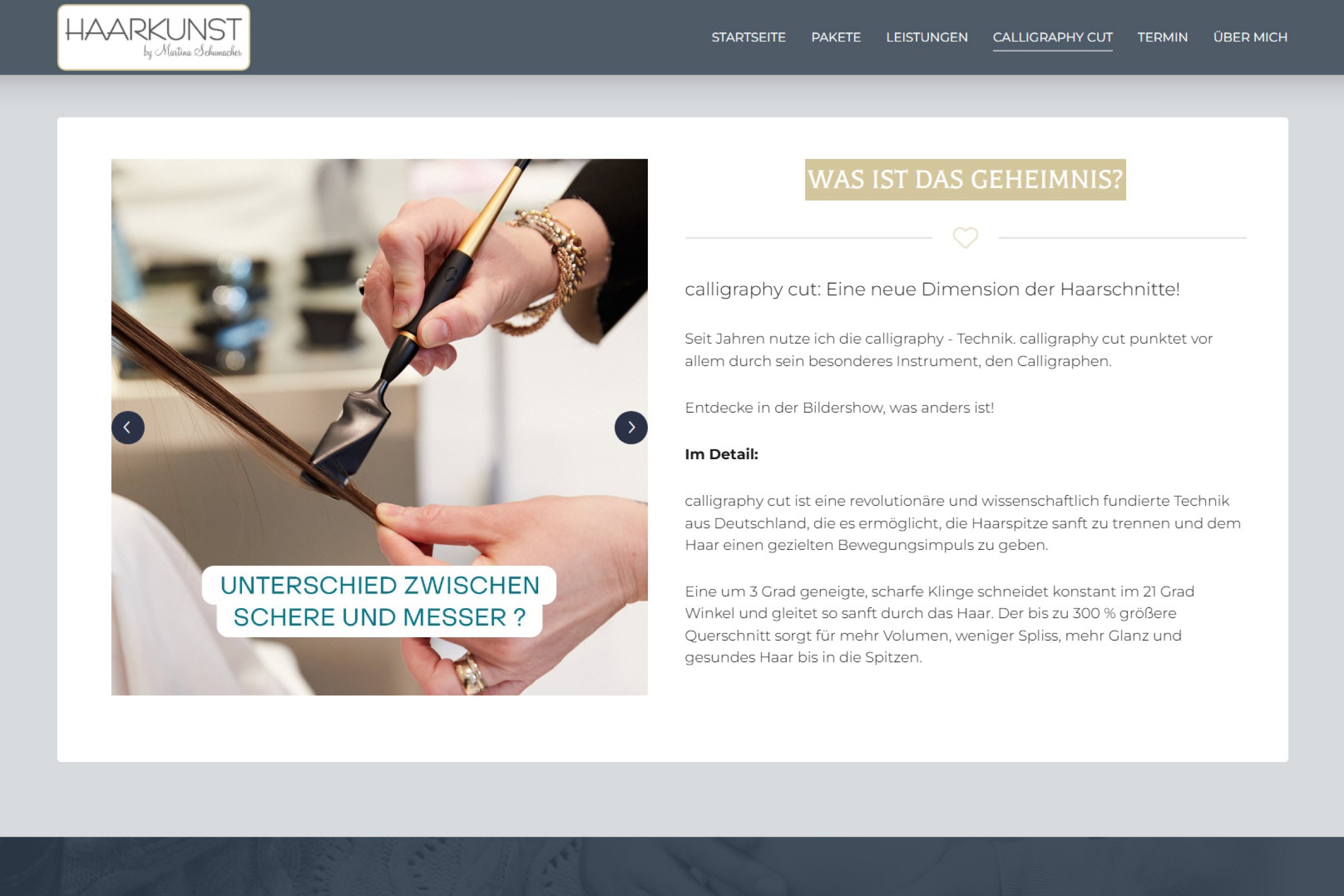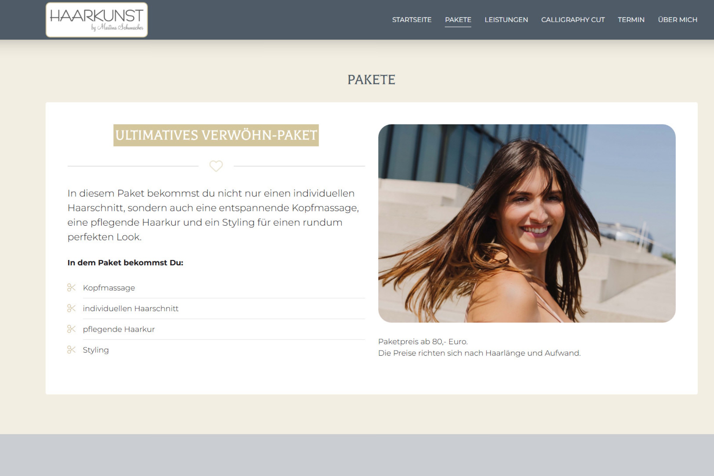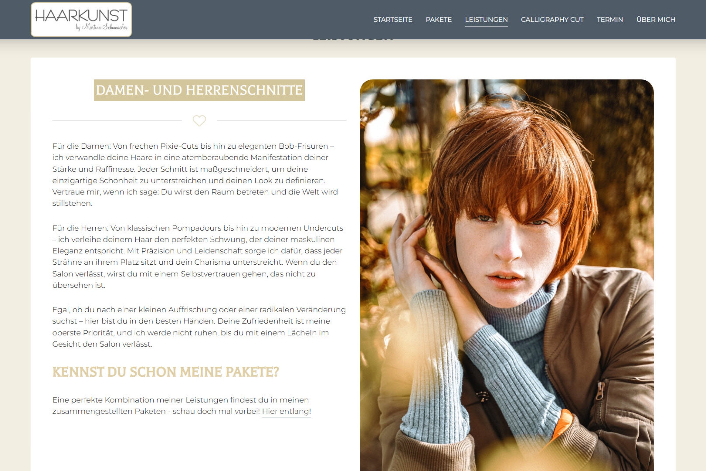 Übersichtlich aufgebaute Unterseite einer Leistung.