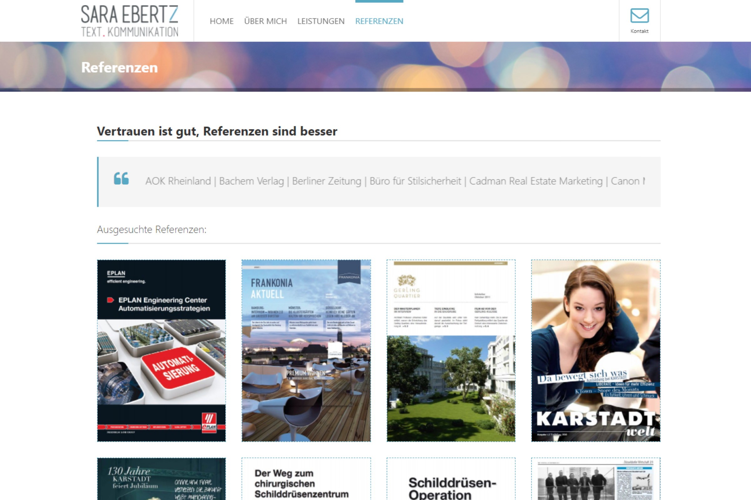 Ausgesuchte Referenzen samt Leseporben als Galerie