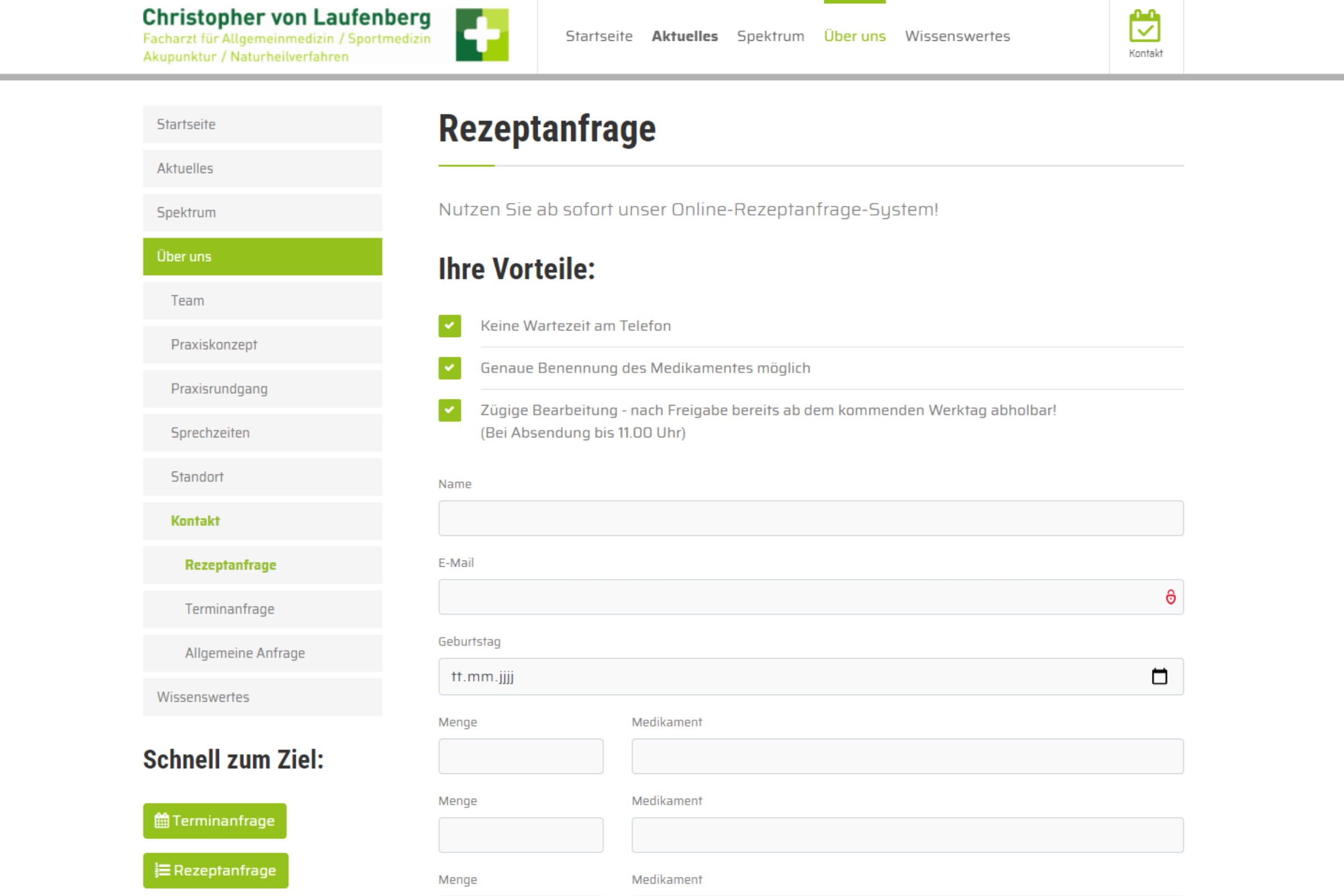 Formular zur Erfassung von Rezeptanfragen