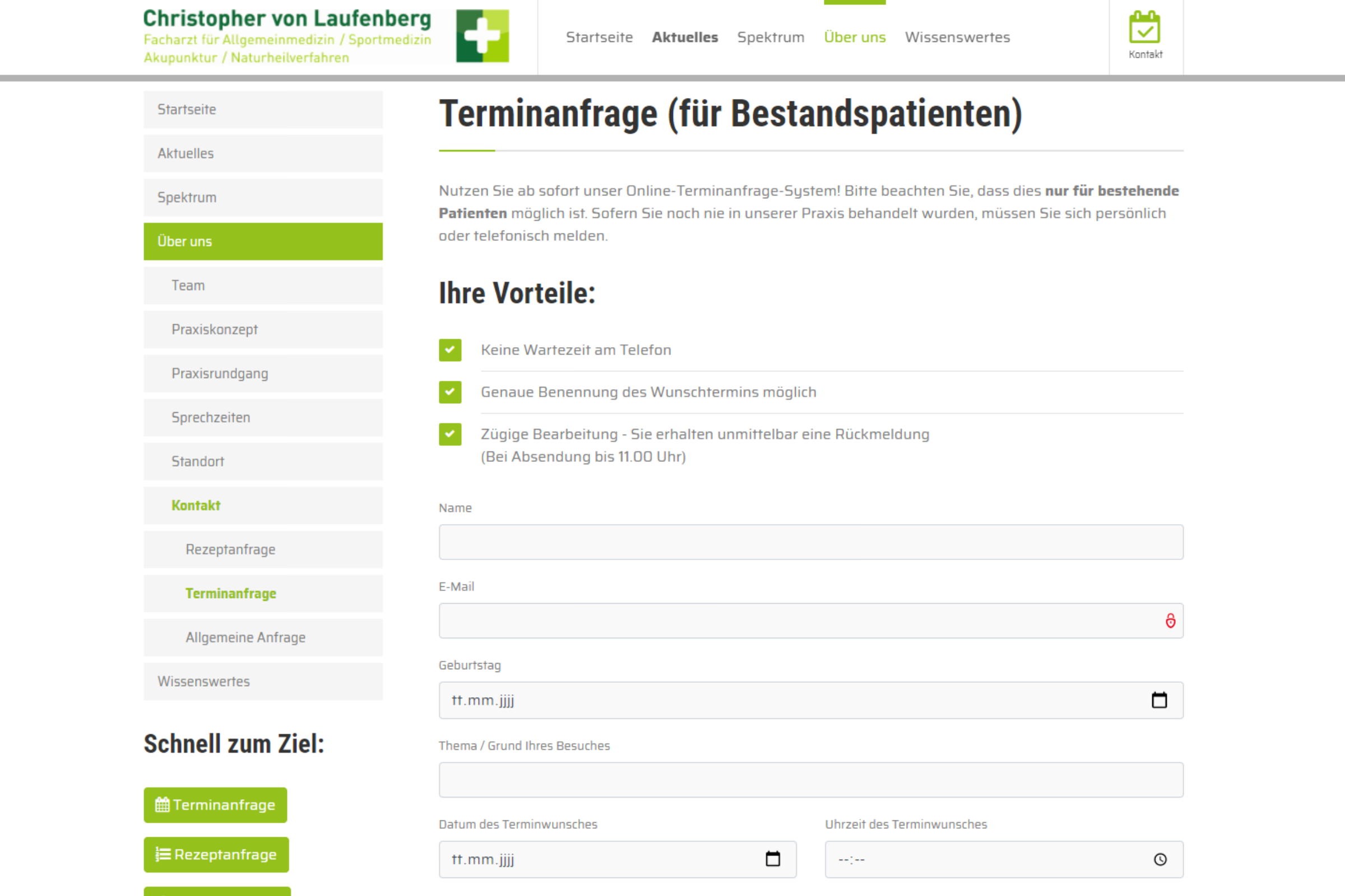 Formular zur Erfassung von Terminanfragen
