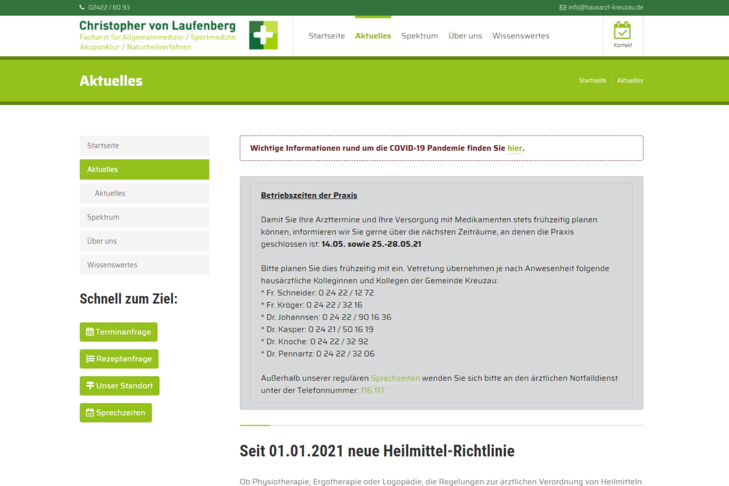 Bereich Aktuelles für wichtige Hinweise & Entwicklungen