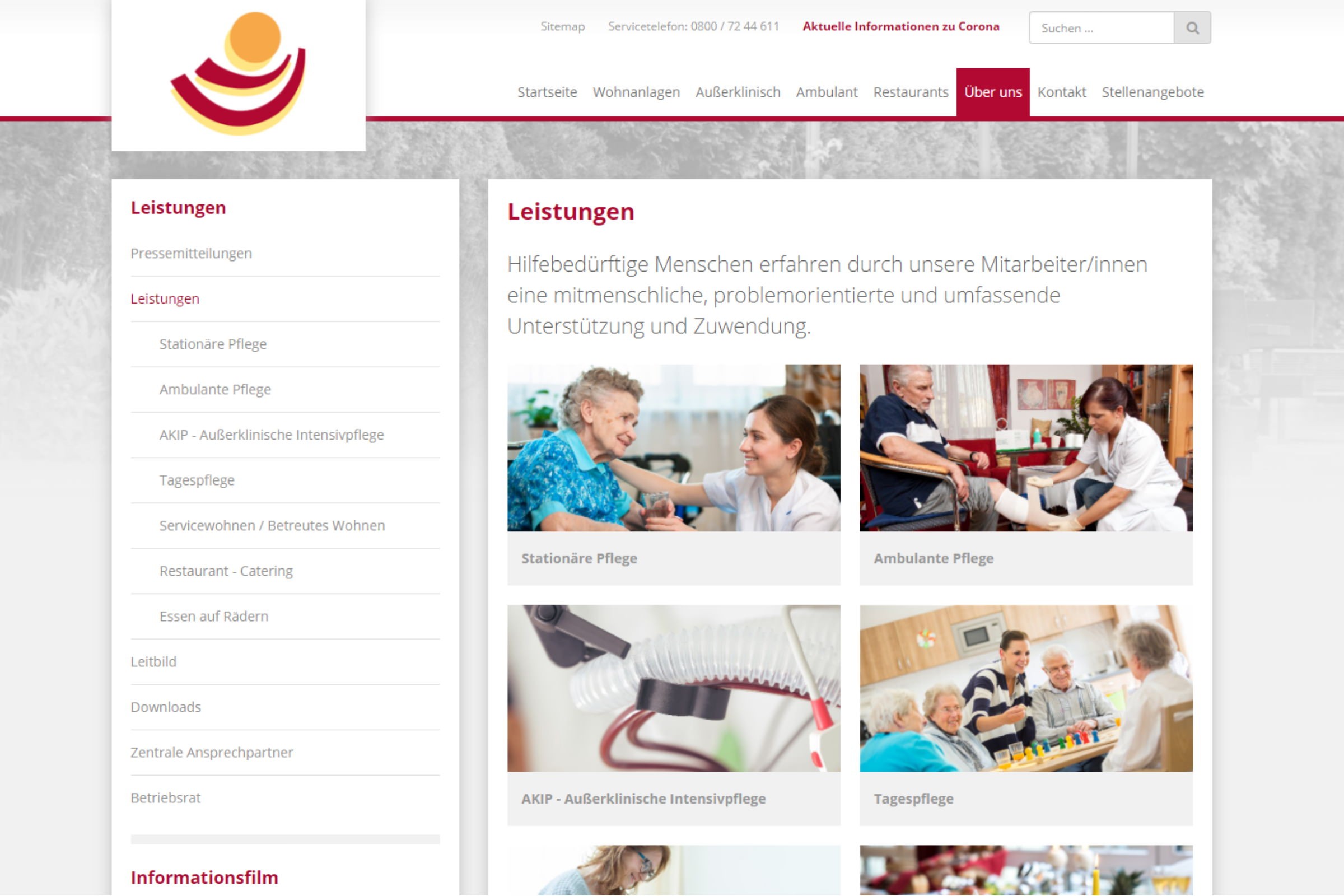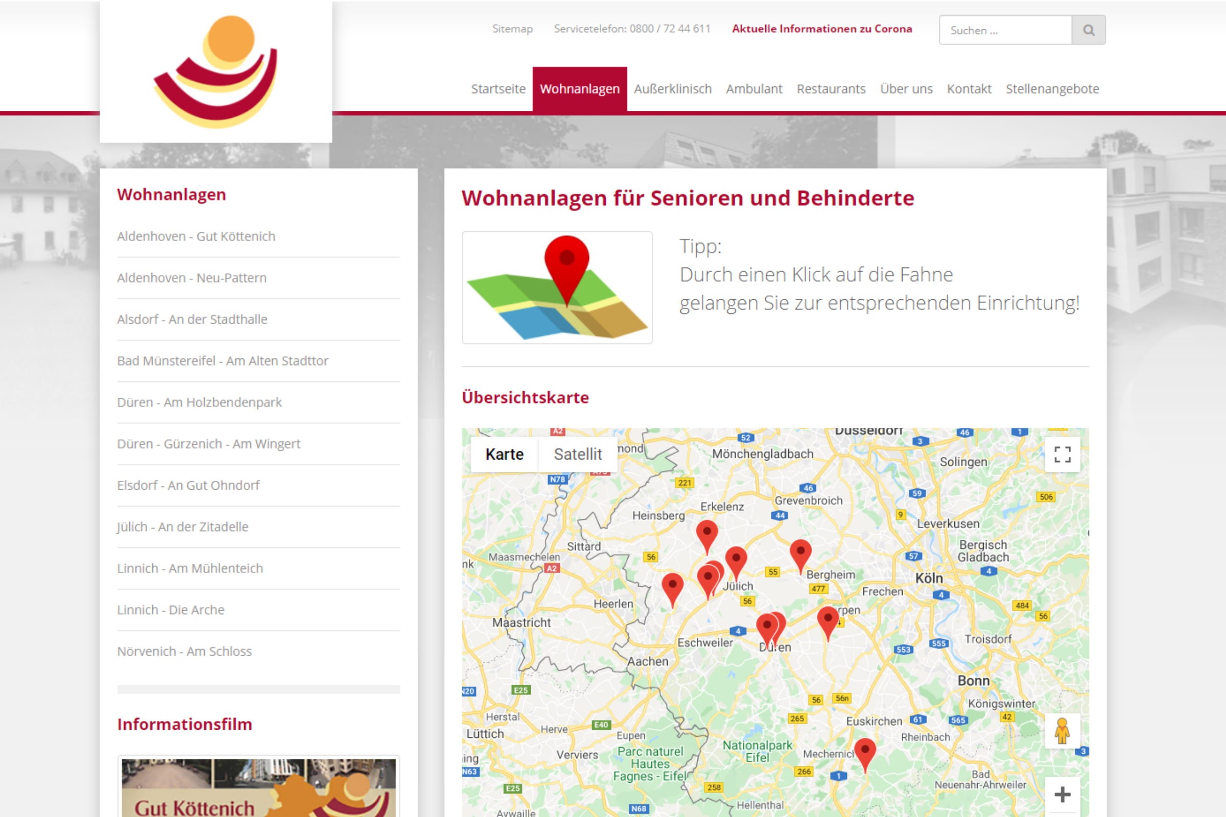 Dachhomepage und Digitales QM für Unternehmsgruppe mit 11 vollstationären Pflegeeinrichtungen in den Kreisen Düren, Euskirchen, der Städteregion Aachen und dem Rhein-Erft-Kreis.